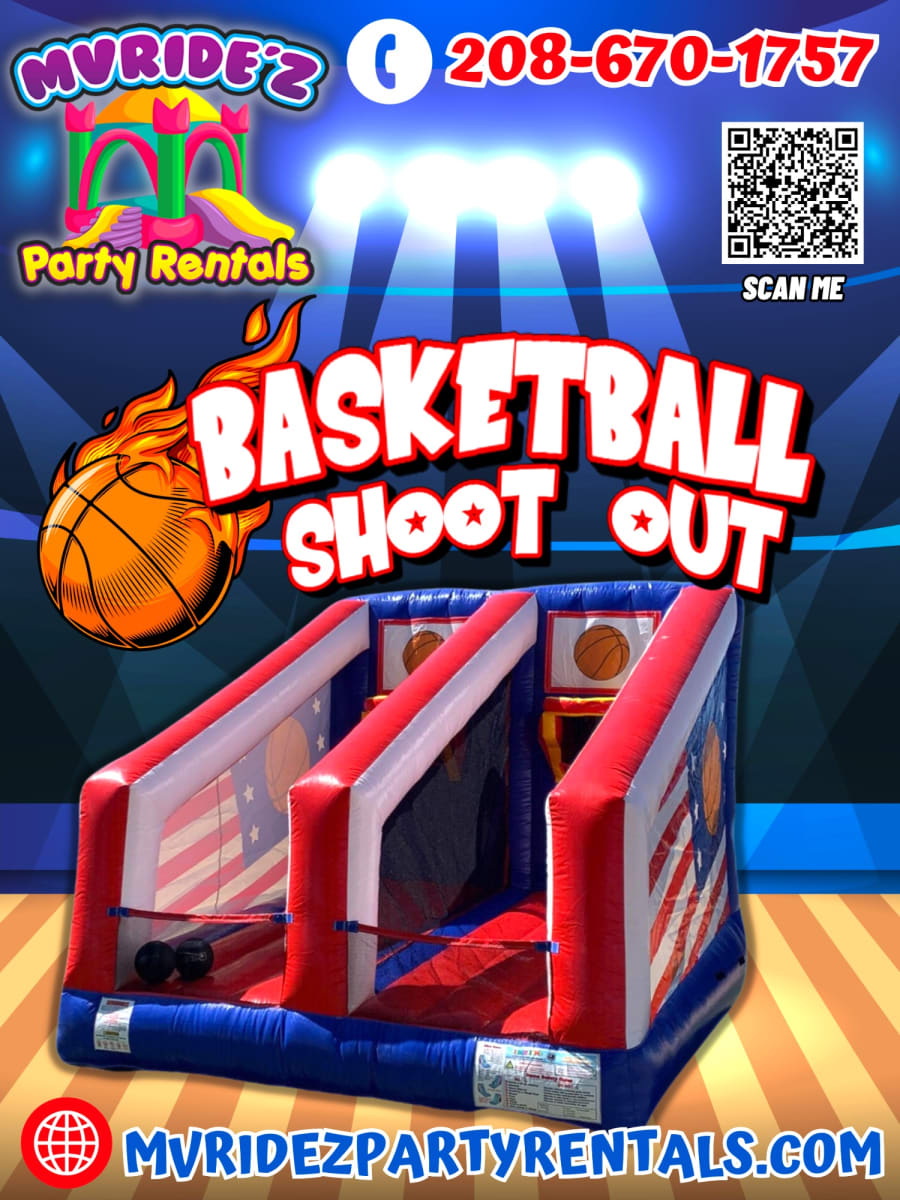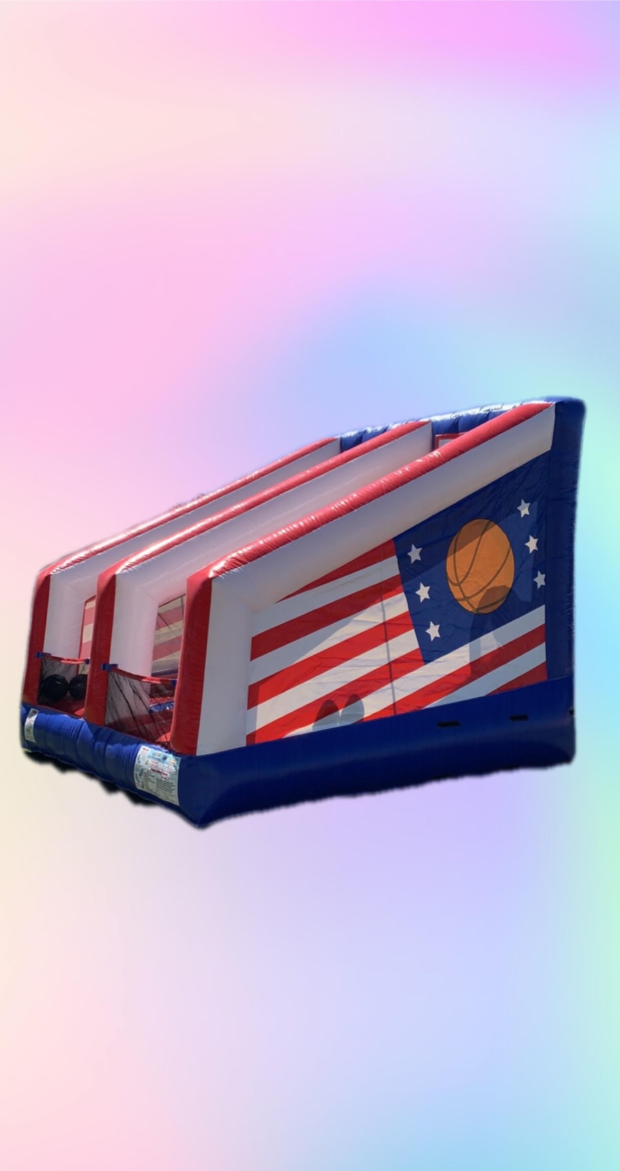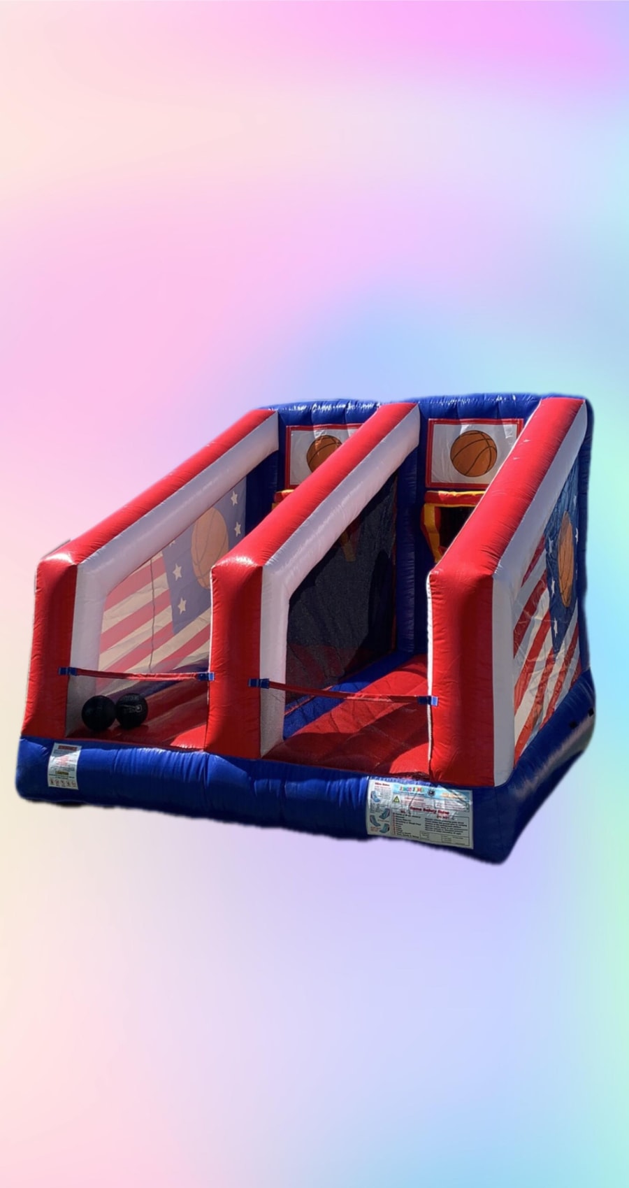 Basketball Inflatable game will bring out for some fun competition! Perfect for any backyard party or school fundraisers and corporate events! This giant inflatable game is easy to set up and can accommodate up to 2 players at a time. The Inflatable Basketball Shootout is great for all ages and can be used indoors or outdoors. Get your game on and make your next party or gathering a blast with this exciting Inflatable Basketball Shootout! Dimensions of this product is 13′ L x 12′ W x 11′ H