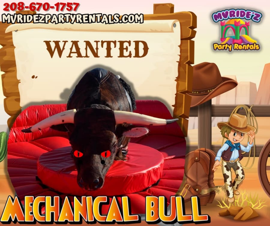 Are you ready to ride the most realistic bull in the area! Book today to test out your skills and while making lasting memories! The bull features 16" padding. Who knows you might surprise yourself and actually be the next PBR champion! This is a licensed PBR bull that actual cowboy stars train on. Contact us today for your quote and start making memories today. Contact MVRidez Party Rentals