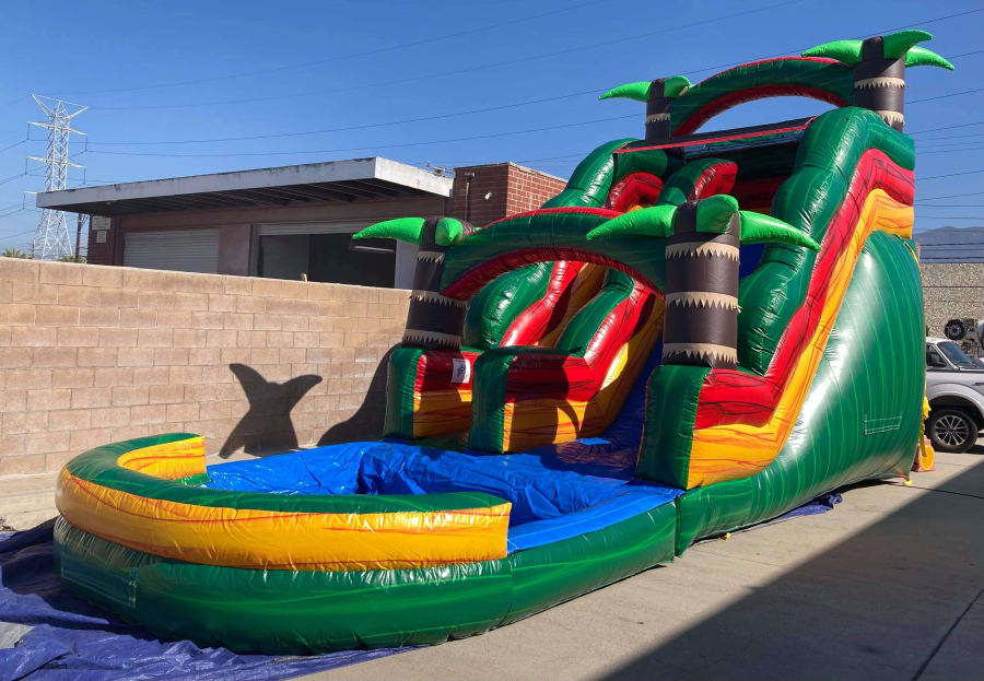 This 18 ft tall green paradise water slide will turn your party into blast! Has its own misting system at the top to keep the slide wet at all times. Perfect for both kids and adults to have some fun! Don't miss out on this and book it today! Call us for more information on this product. Delivery available to Twin Falls, Burley, Heyburn, Paul, Rupert, Jerome, Murtaugh, Hazelton, Hansen and nearby areas. Please call us for any questions (208)670-1757